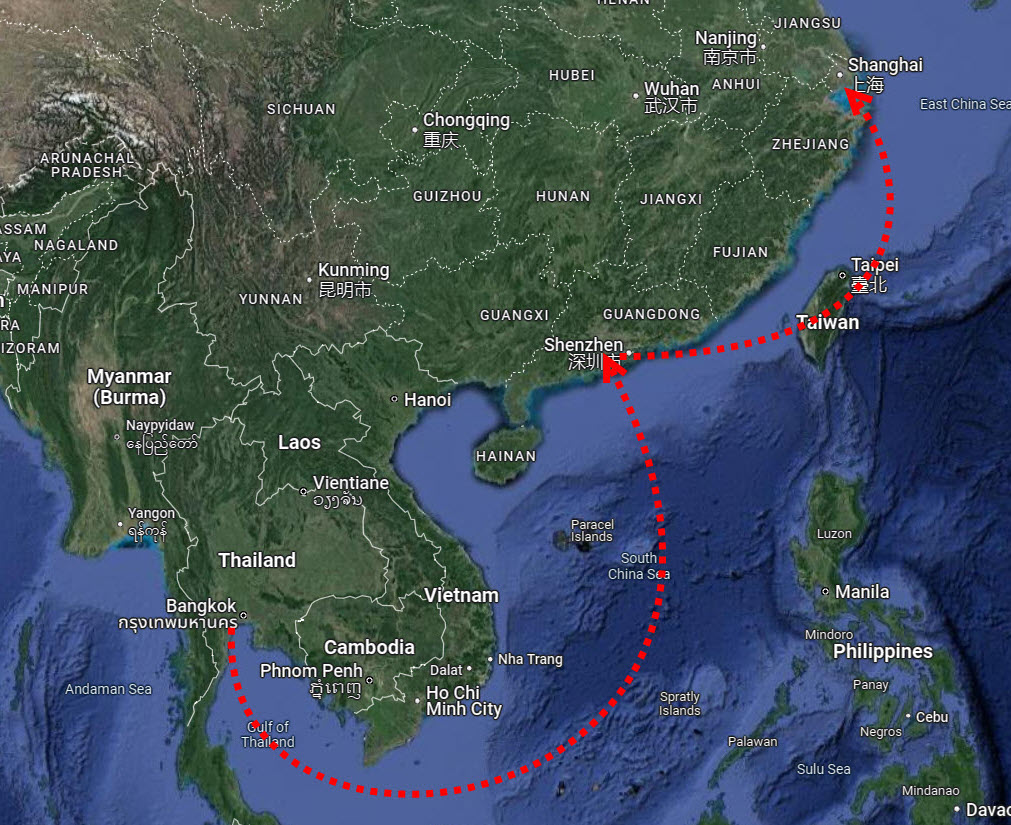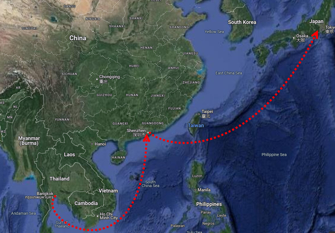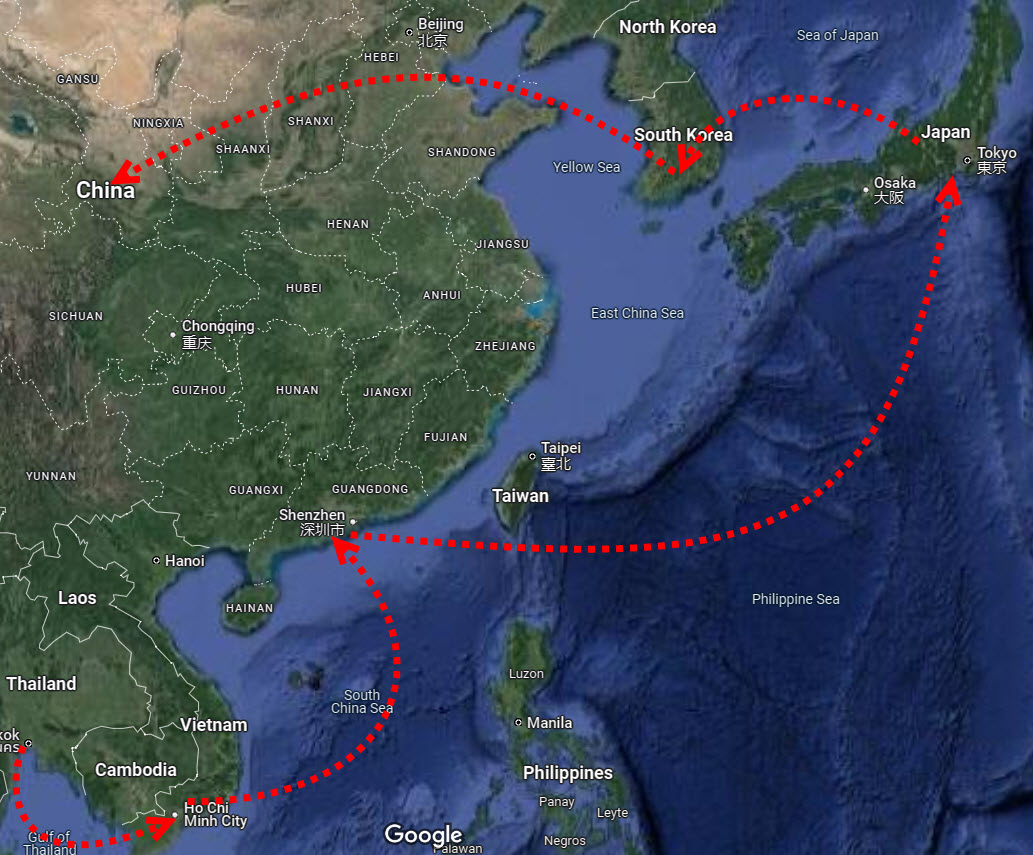Thailand - Ho Chi Minh - Nansha - Japan - Korea - China